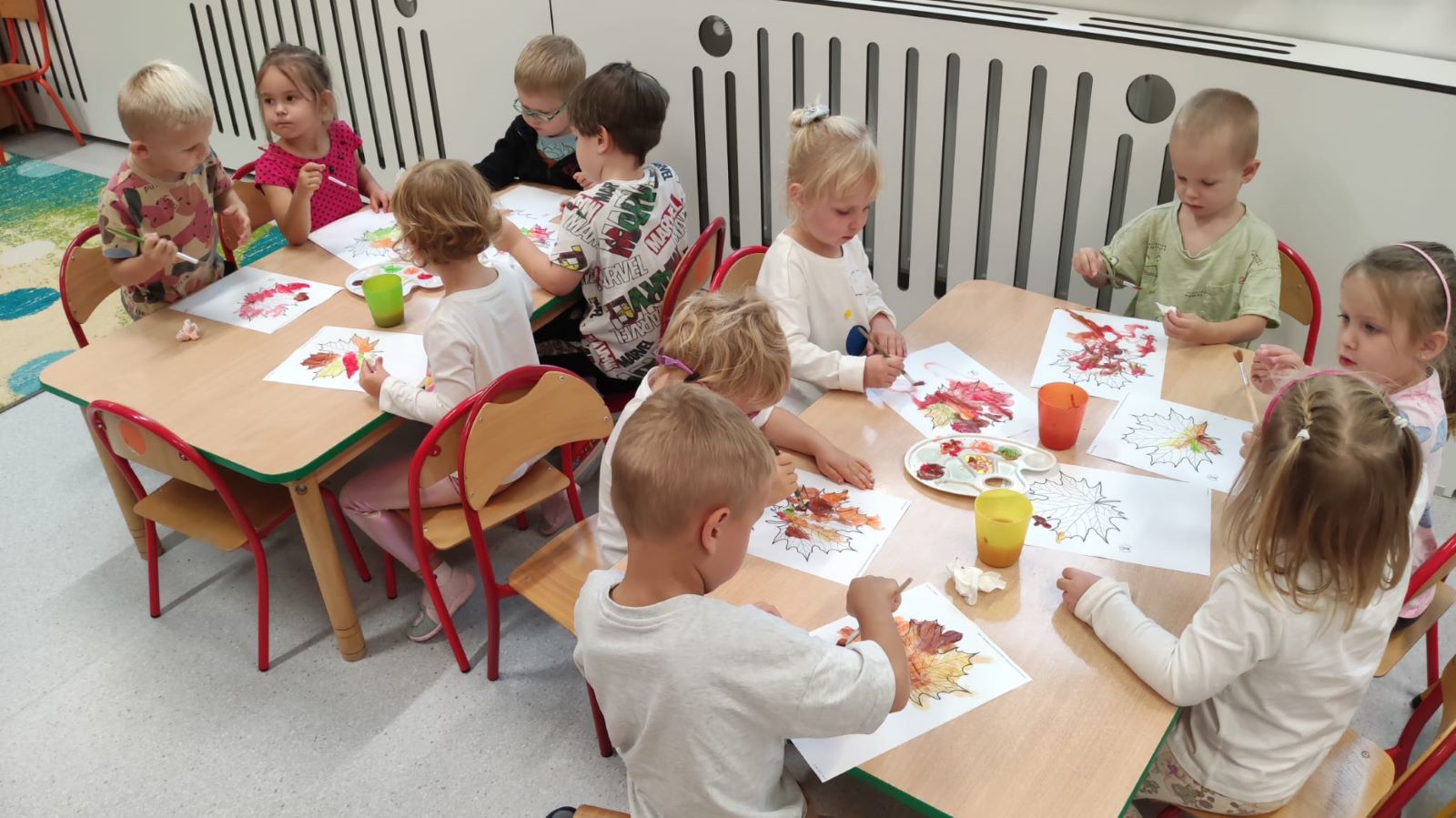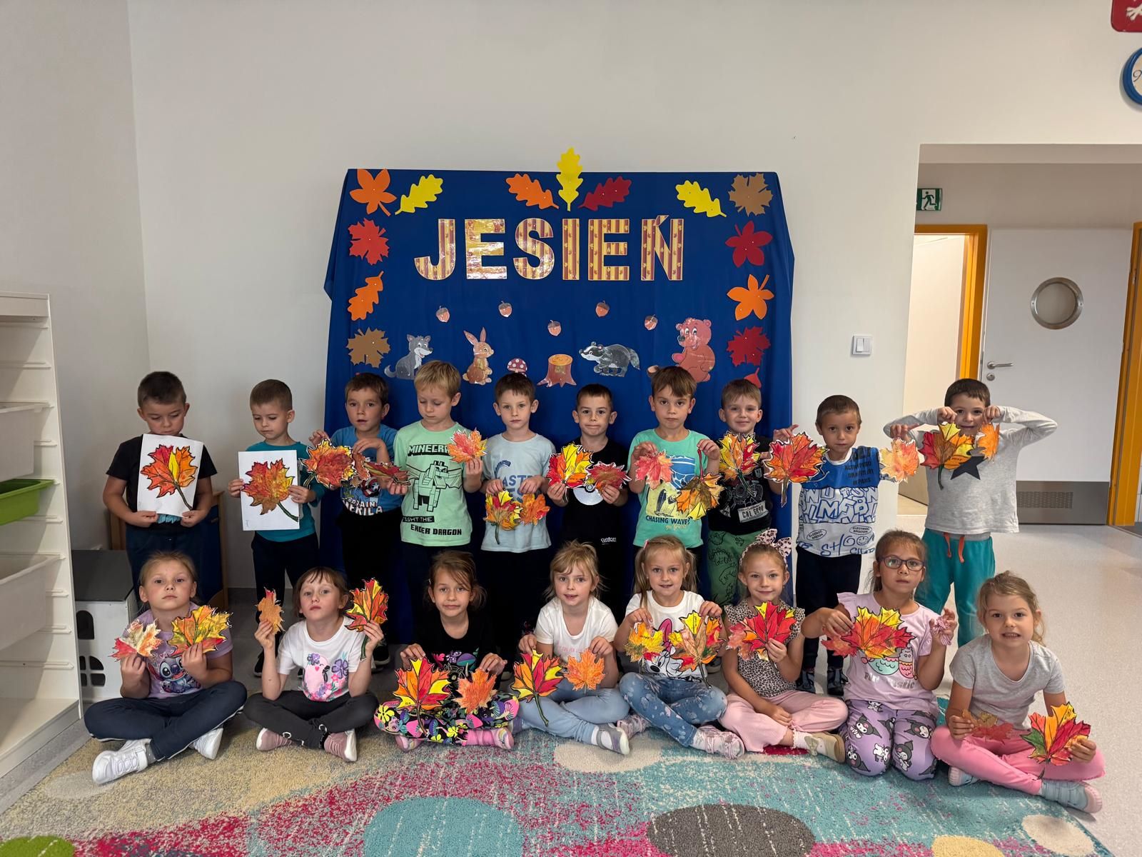 Do naszego przedszkola zawitała złota jesień! Dzieci tego dnia  śpiewały jesienne piosenki, tańczyły i brały udział w zabawach tematycznych związanych z jesienią. Dzieci dowiedziały się o tym, jak zwierzęta przygotowują się do zimy, które zasypiają a które opuszczają nas na czas zimy. Dzieci opowiadały rownież o jesiennych skarbach  – warzywach, owocach, grzybach, kasztanach, żołędziach i kolorowych liściach. Na zakończenie przygotowały swoje własne jesienne liście, które ozdobiły nasze tablice.