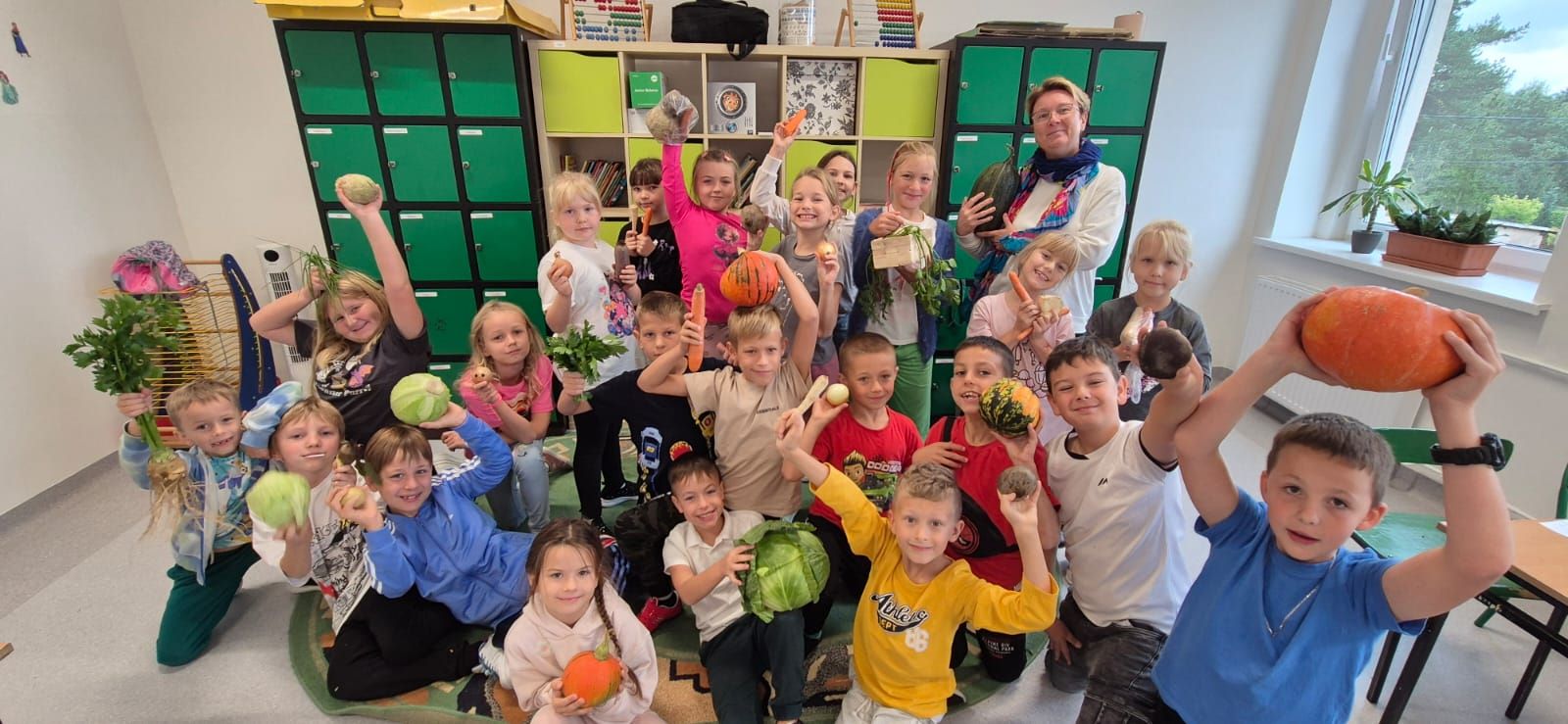 W klasie II odbyła się wyjątkowa i bardzo kolorowa lekcja poświęcona znanemu wierszowi Jana Brzechwy „Na straganie”. Uczniowie przygotowali się do niej z wielkim zaangażowaniem – każdy z nich przyniósł ze sobą świeże warzywa, które posłużyły jako rekwizyty podczas zajęć. Dzięki temu sala lekcyjna zamieniła się w prawdziwy warzywny stragan, pełen barw, zapachów i uśmiechu. Podczas lekcji dzieci recytowały wiersz, wcielając się w poszczególne role. Pięknie wyuczone kwestie oraz odpowiednia intonacja sprawiły, że utwór ożył, a bohaterowie zyskały swoje głosy i charaktery. Uczniowie wykazali się nie tylko świetną pamięcią, ale także zdolnościami aktorskimi i odwagą sceniczną. Lekcja była okazją do utrwalenia znajomości literatury dziecięcej, ale także do rozwijania umiejętności wystąpień publicznych. Dzieci uczyły się współpracy, wzajemnego słuchania i wspólnej zabawy, która łączy naukę z radością tworzenia. Relację z wydarzenia można obejrzeć i wysłuchać na szkolnym profilu Instagram, gdzie udostępniono fragmenty występów. Dzięki temu także rodzice i cała społeczność szkolna mogą podziwiać wysiłek i zaangażowanie uczniów klasy II.
