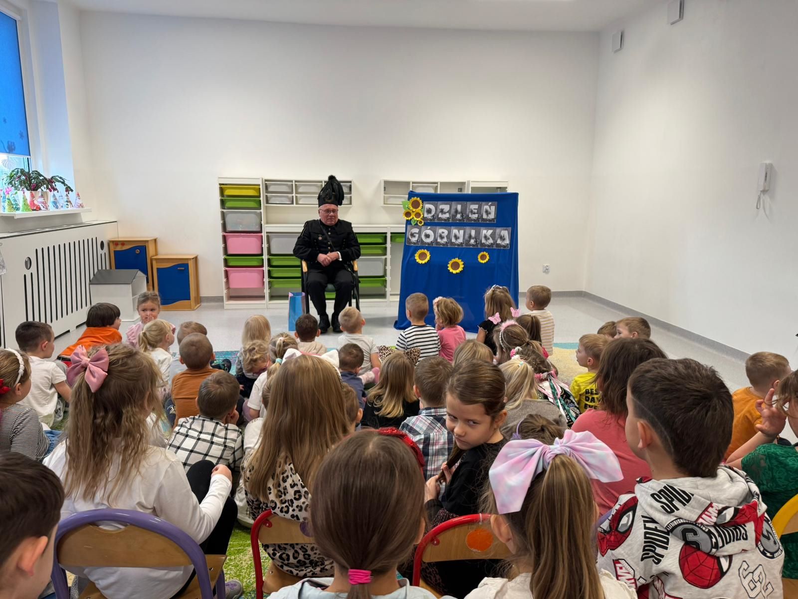 4 grudnia z naszym przedszkolu obchodziliśmy Dzień Górnika. W tym dniu odwiedził nas Górnik, który opowiedział przedszkolakom o ciężkiej pracy w kopalni. Górnik przybył do nas w stroju galowym, dlatego dzieci miały okazję przyjrzeć się mundurowi, czapce górniczej oraz odznaczeniom. Przedszkolaki chętnie i z zaciekawieniem wysłuchały opowieści.