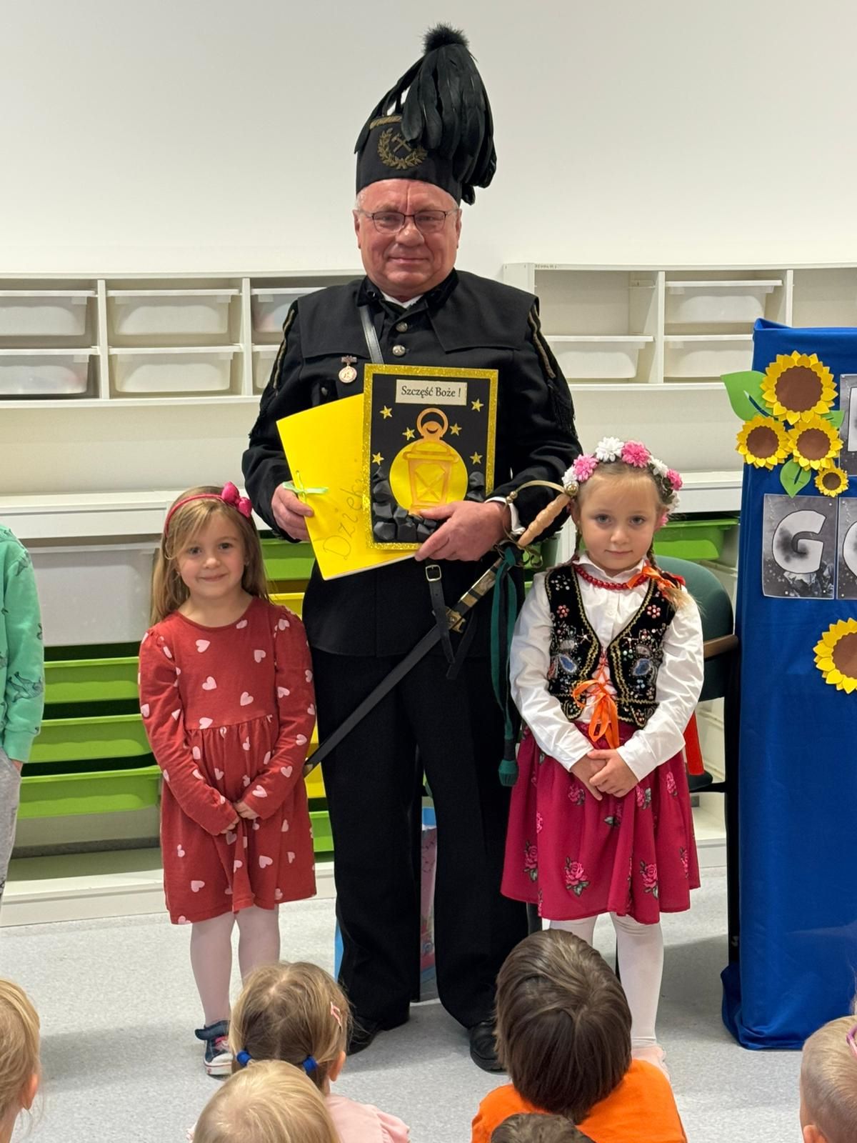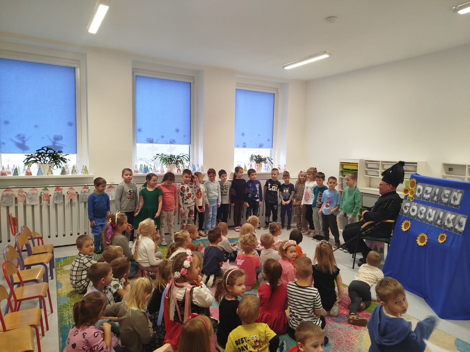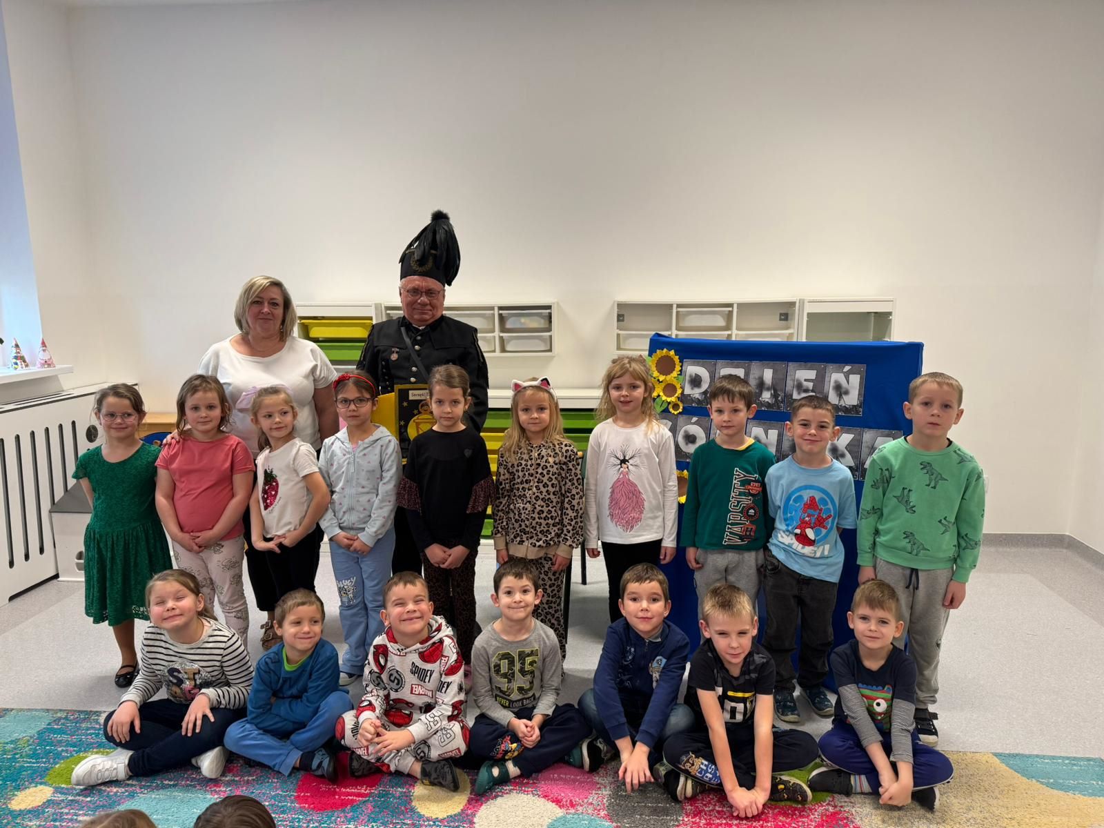 Najstarsza grupa odśpiewała dla Pana Górnika piosenkę oraz wyrecytowała wiersze. Spotkanie zakończyliśmy pamiątkowym zdjęciem.