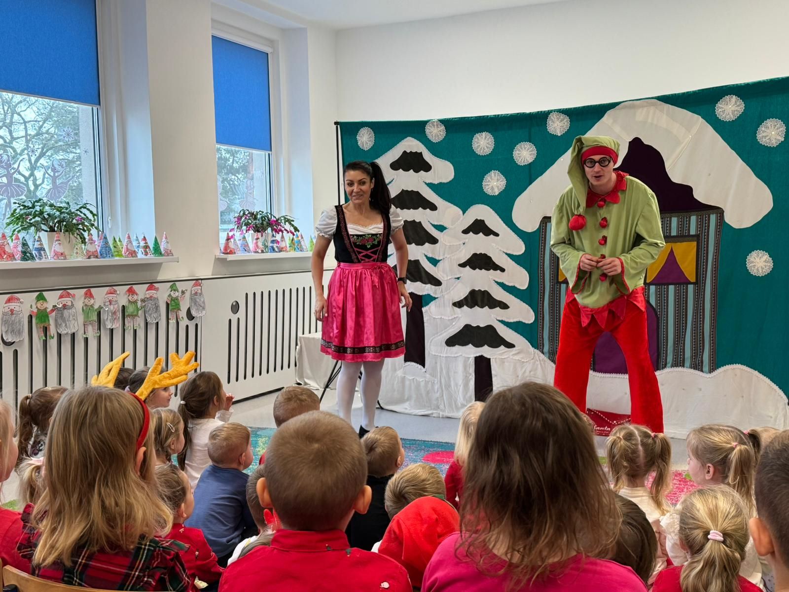 Drugiego grudnia w naszym przedszkolu panowała wyjątkowa, świąteczna atmosfera. Od rana dzieci z niecierpliwością wypatrywały niezwykłego gościa... I wreszcie się pojawił - Święty Mikołaj. Jego przybycie wywołało ogromną radość, uśmiechy i podekscytowanie w każdej grupie. Przed przyjęciem Świętego Mikołaja teatr ,,Skrzat" zaprezentował dzieciom świąteczne przestawienie pt.: ,,List do Świętego Mikołaja". Spektakl wprowadził dzieci w magiczną atmosferę zbliżających się Świąt Bożego Narodzenia.