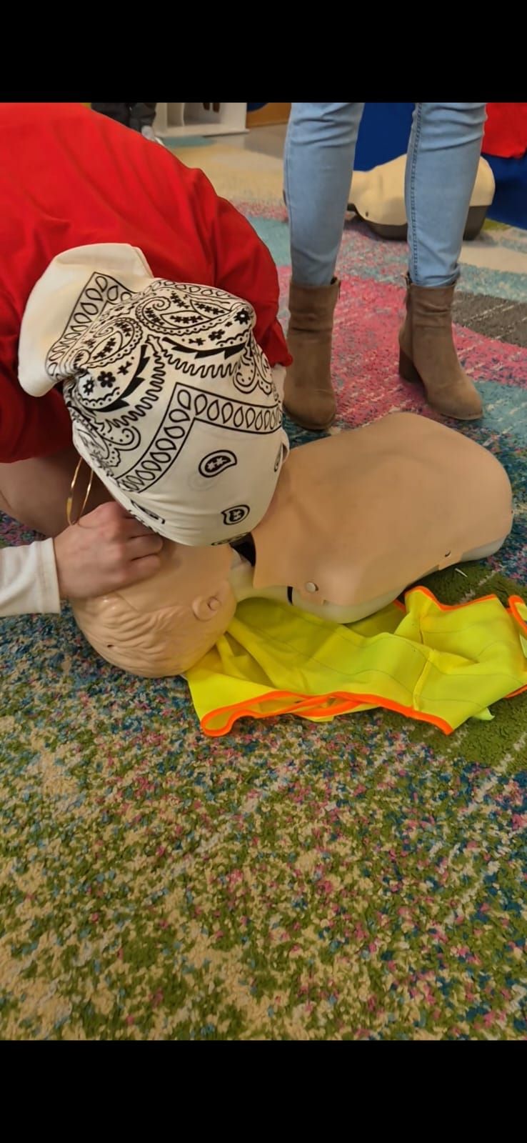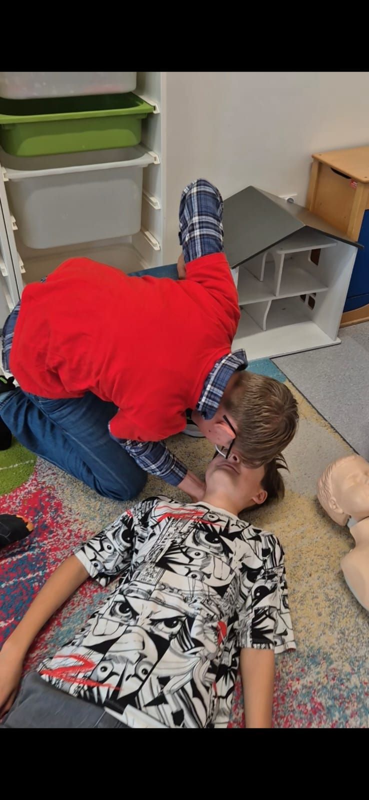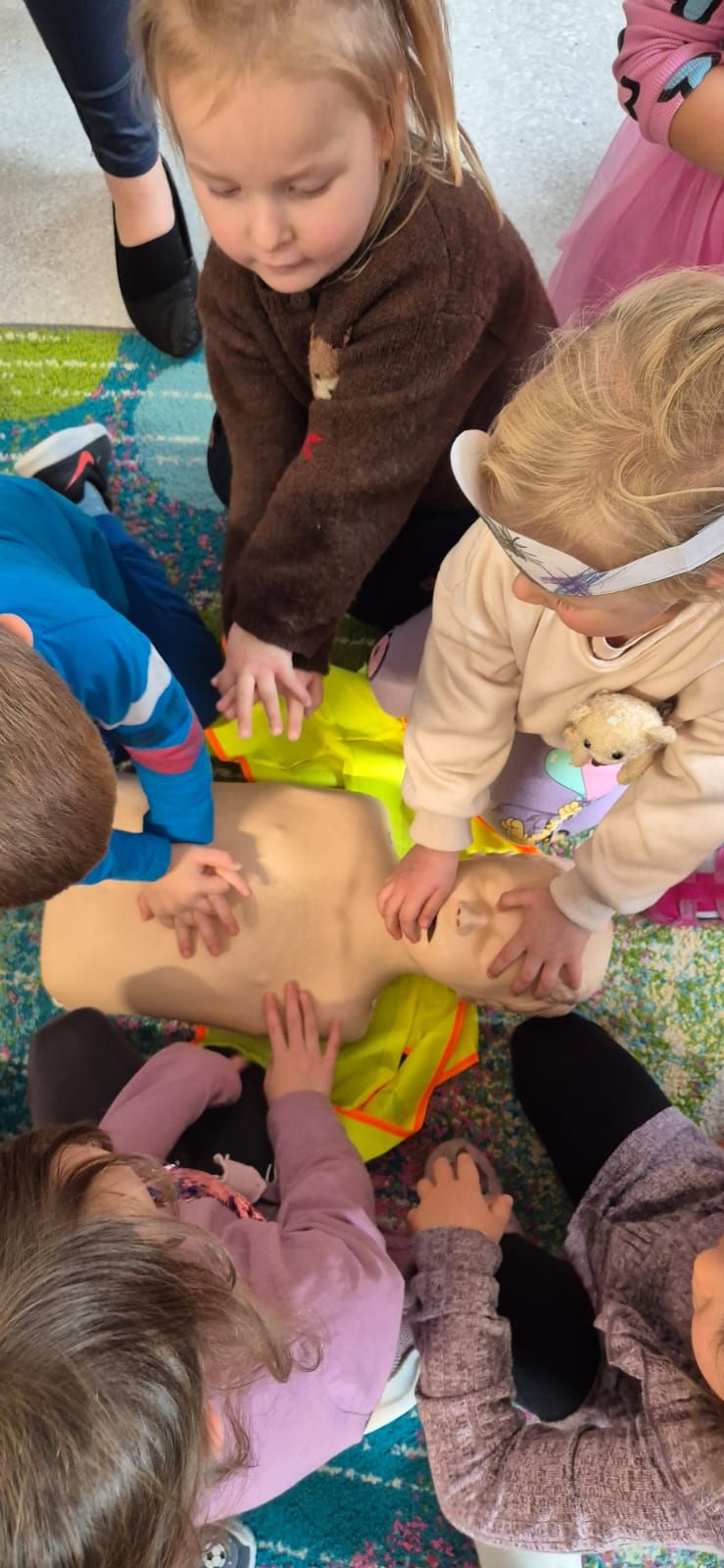 W czwartek, 16 października 2025 roku o godzinie 12:00, nasza szkoła wzięła udział we wspólnym biciu rekordu w jednoczesnym prowadzeniu resuscytacji krążeniowo–oddechowej, organizowanym przez Wielką Orkiestrę Świątecznej Pomocy (WOŚP). W wydarzeniu uczestniczyły trójki klasowe, które zaprezentowały swoje umiejętności z zakresu udzielania pierwszej pomocy. Uczniowie z zaangażowaniem prowadzili pokaz resuscytacji krążeniowo–oddechowej (RKO), przybliżając jej zasady naszym najmłodszym – przedszkolakom. Pokaz miał nie tylko charakter edukacyjny, ale również promował ideę ratowania życia i uświadamiał, jak ważna jest szybka reakcja w sytuacjach zagrożenia. Dzieci z przedszkola z dużym zainteresowaniem obserwowały działania starszych kolegów i chętnie zadawały pytania.