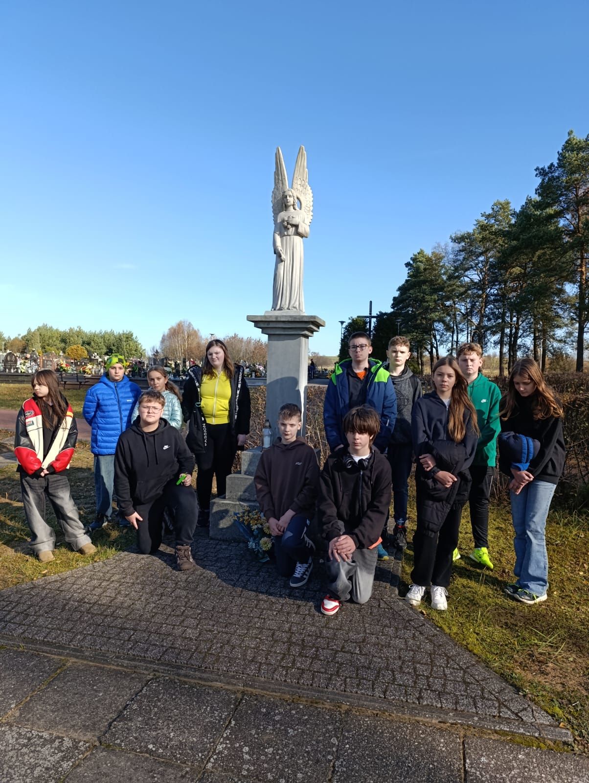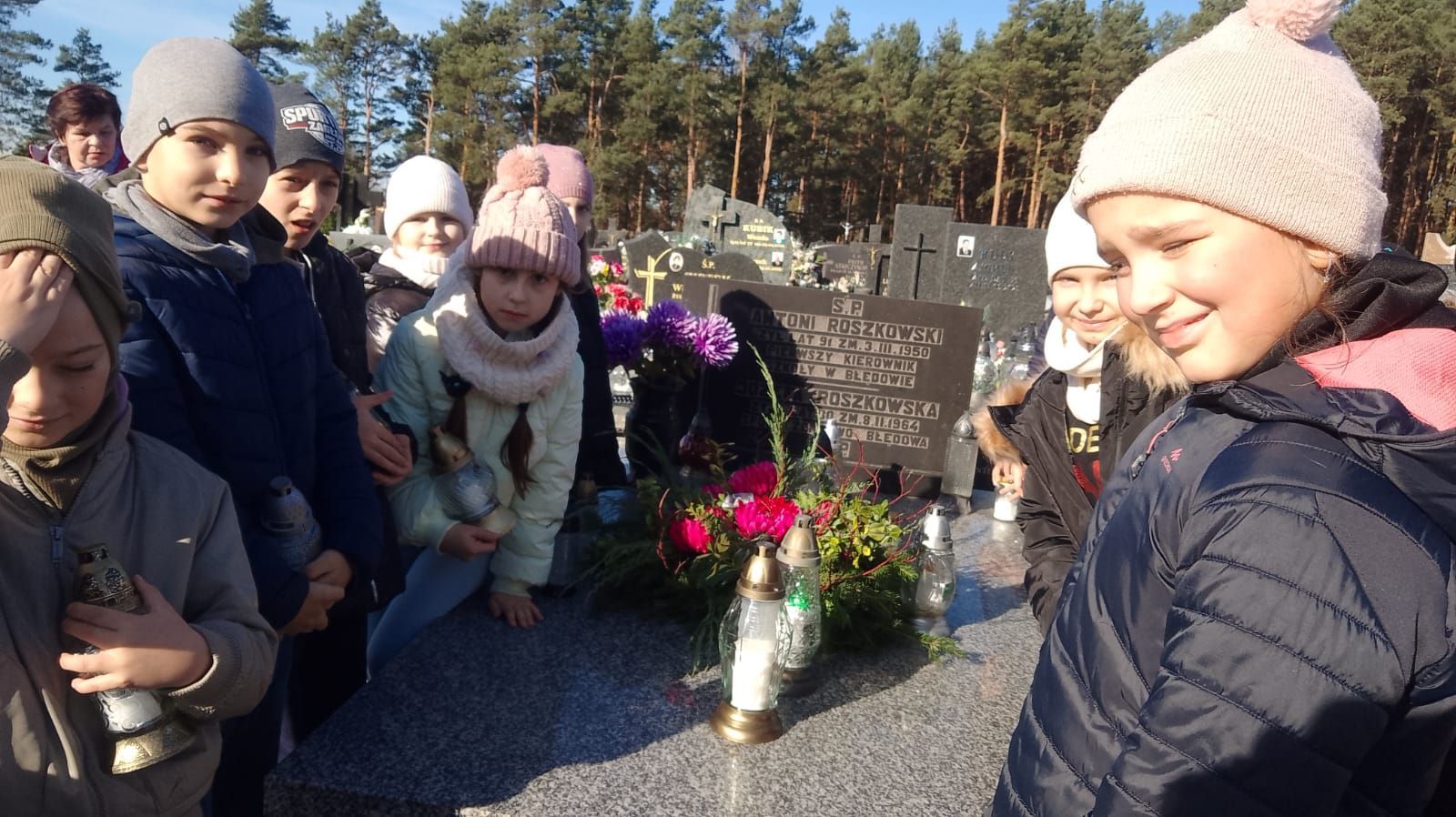 W tym roku szczególnie zatrzymaliśmy się przy grobie naszego niedawno zmarłego kolegi, ucznia klasy VIII – Mikołaja Skarżyńskiego. Wspólnym milczeniem, modlitwą i zapaleniem zniczy uczciliśmy jego pamięć.