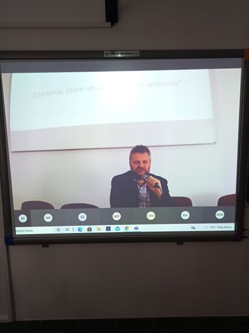 W ramach realizacji projektu dla uczniów i nauczycieli z województwa śląskiego „Gdy gaśnie pamięć ludzka, dalej mówią kamienie… 13 grudnia 1981r. - Pamiętamy!” uczniowie klas ósmych naszej szkoły uczestniczyli w wykładzie online pt.: Zdarzenia, które obudziły „ducha wolności”. Wykład poprzedzony był wystąpieniem pani Urszuli Bauer – Śląskiego Kuratora Oświaty. Celem wykładu było przybliżenie młodzieży realiów życie na przełomie lat 70-tych i 80-tych ubiegłego wieku, a także uświadomienie jak trudna i niebezpieczna była prowadzona w tym czasie walka o wolność i suwerenność naszej ojczyzny.
