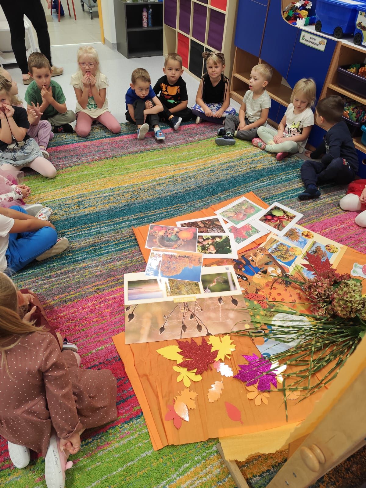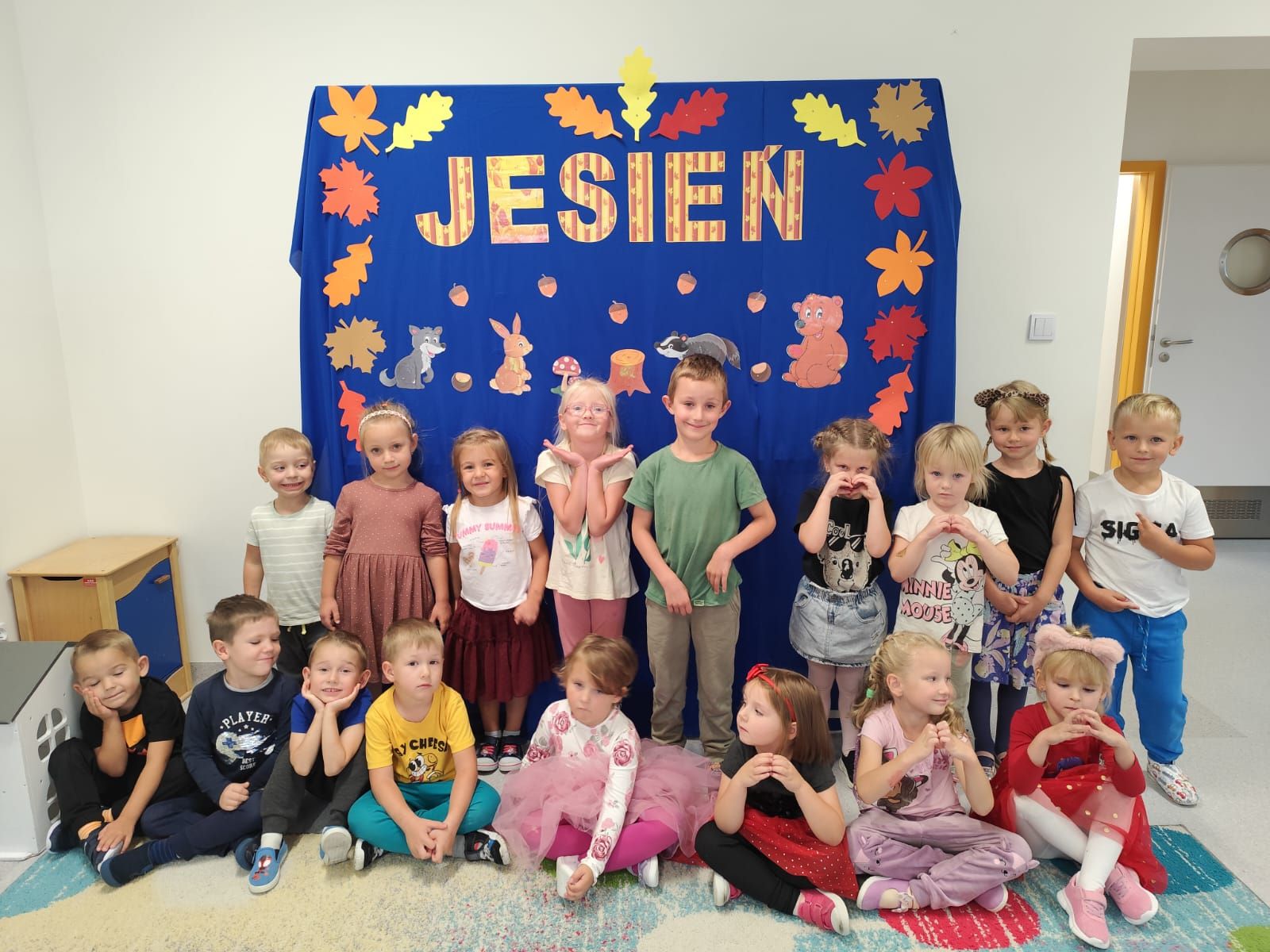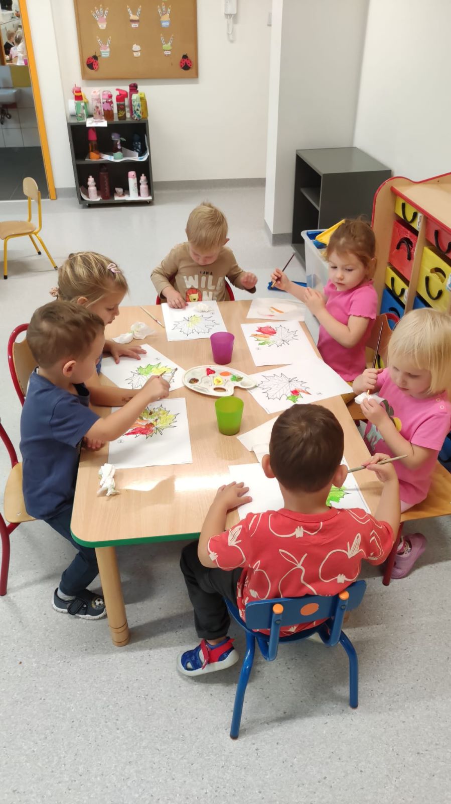 Do naszego przedszkola zawitała złota jesień! Dzieci tego dnia śpiewały jesienne piosenki, tańczyły i brały udział w zabawach tematycznych związanych z jesienią. Dzieci dowiedziały się o tym, jak zwierzęta przygotowują się do zimy, które zasypiają a które opuszczają nas na czas zimy. Dzieci opowiadały rownież o jesiennych skarbach – warzywach, owocach, grzybach, kasztanach, żołędziach i kolorowych liściach. Na zakończenie przygotowały swoje własne jesienne liście, które ozdobiły nasze tablice.