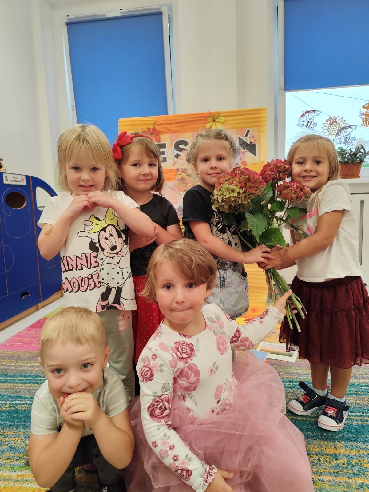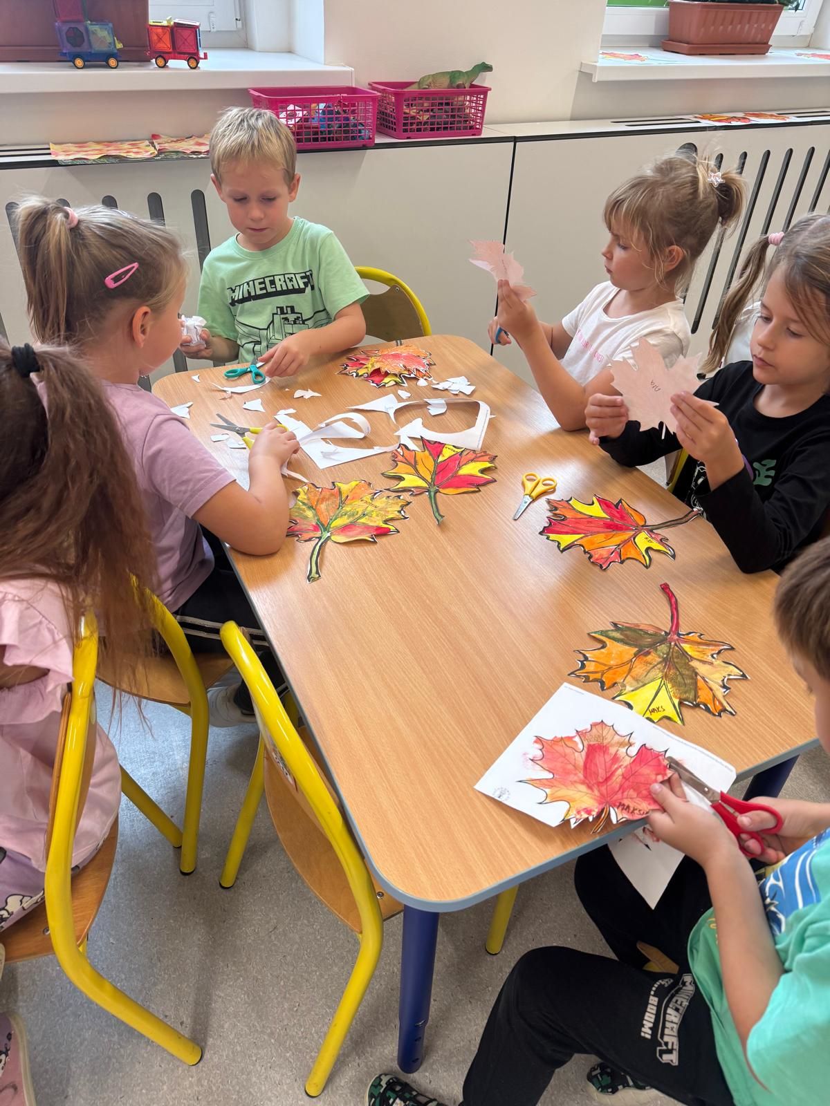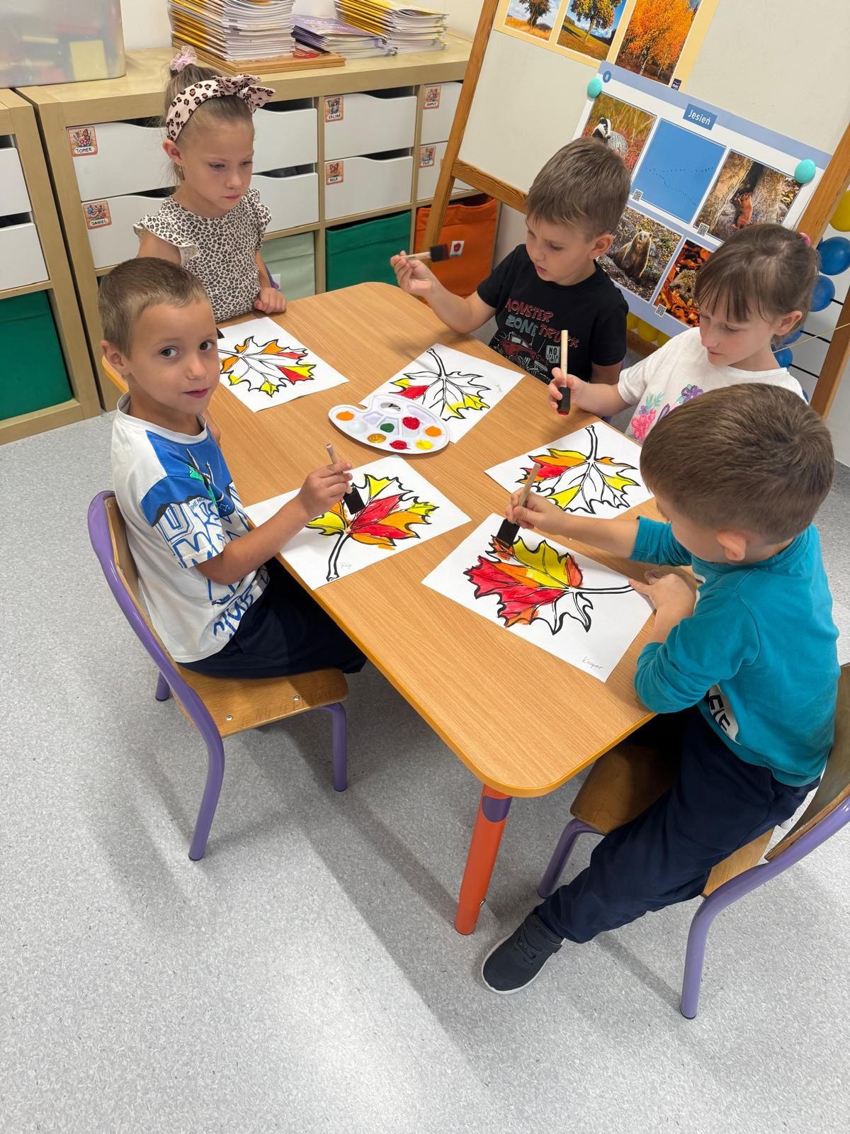 Do naszego przedszkola zawitała złota jesień! Dzieci tego dnia śpiewały jesienne piosenki, tańczyły i brały udział w zabawach tematycznych związanych z jesienią. Dzieci dowiedziały się o tym, jak zwierzęta przygotowują się do zimy, które zasypiają a które opuszczają nas na czas zimy. Dzieci opowiadały rownież o jesiennych skarbach – warzywach, owocach, grzybach, kasztanach, żołędziach i kolorowych liściach. Na zakończenie przygotowały swoje własne jesienne liście, które ozdobiły nasze tablice.