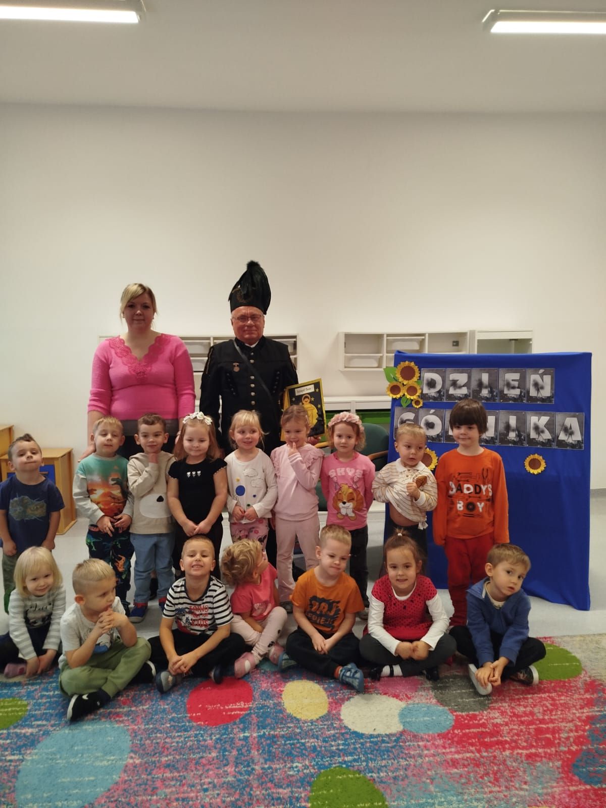 Najstarsza grupa odśpiewała dla Pana Górnika piosenkę oraz wyrecytowała wiersze. Spotkanie zakończyliśmy pamiątkowym zdjęciem.