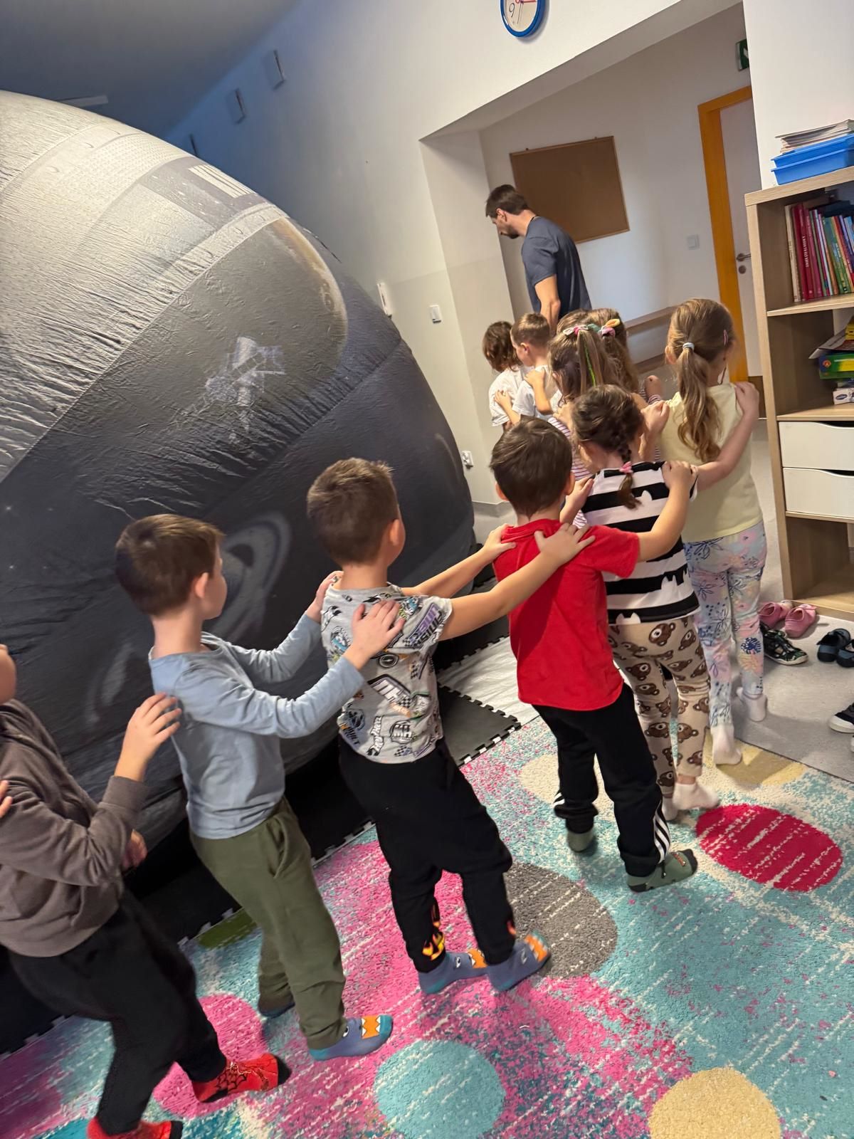 Przedszkole to miejsce, gdzie wyobraźnia dzieci nie zna granic. Wyjątkowym sposobem na rozwijanie tej wyobraźni okazuje się być kino sferyczne - nowoczesna forma edukacji i rozrywki. 5 listopada w naszym przedszkolu odbyły się pokazy kina sferycznego, które zaoferowały dzieciom niezwykłe doświadczenia filmowe. Dzieci mogły wejść do kopuły, w której wyświetlane były filmy. To był dzień pełen uśmiechów i wrażeń !