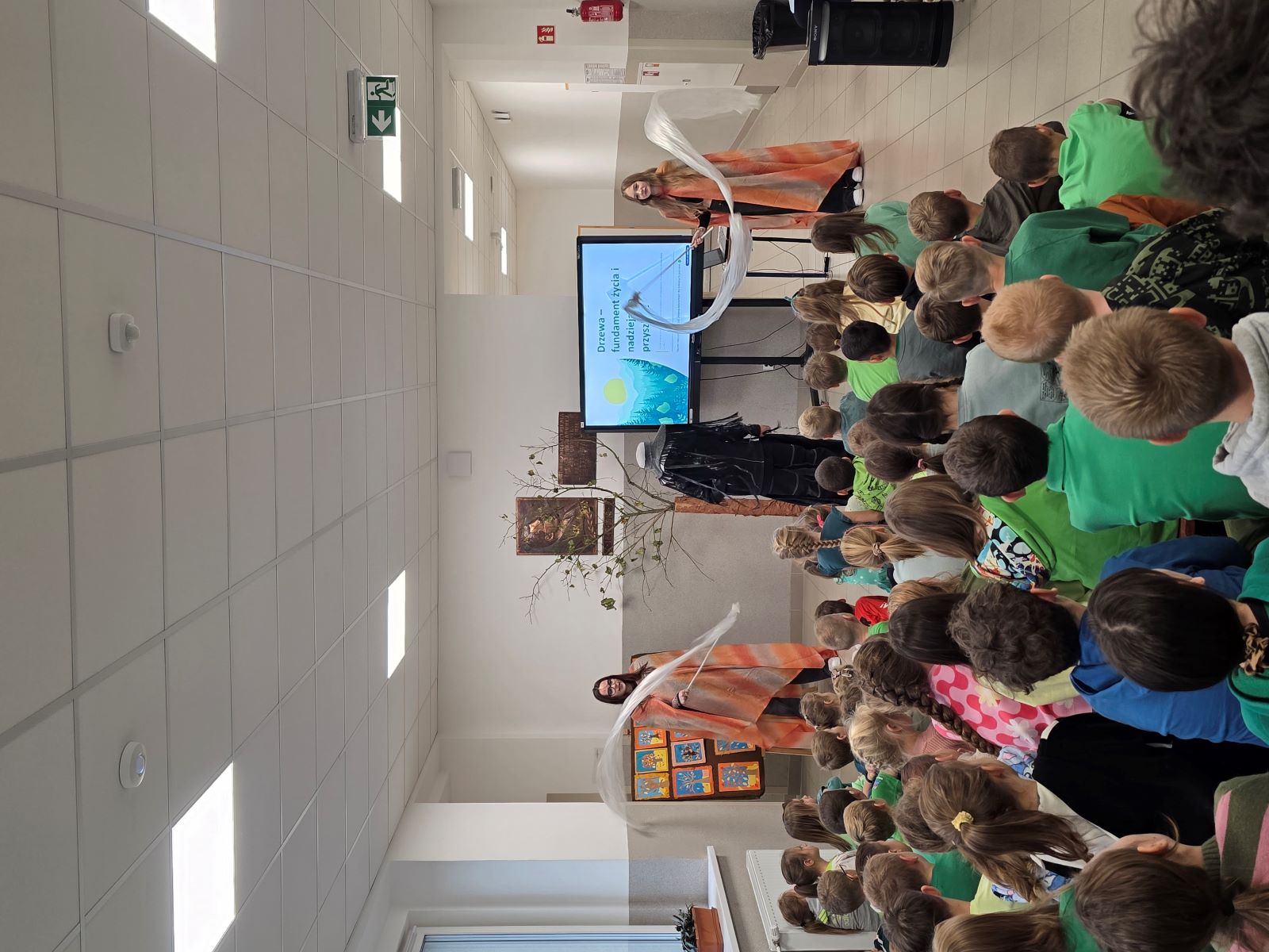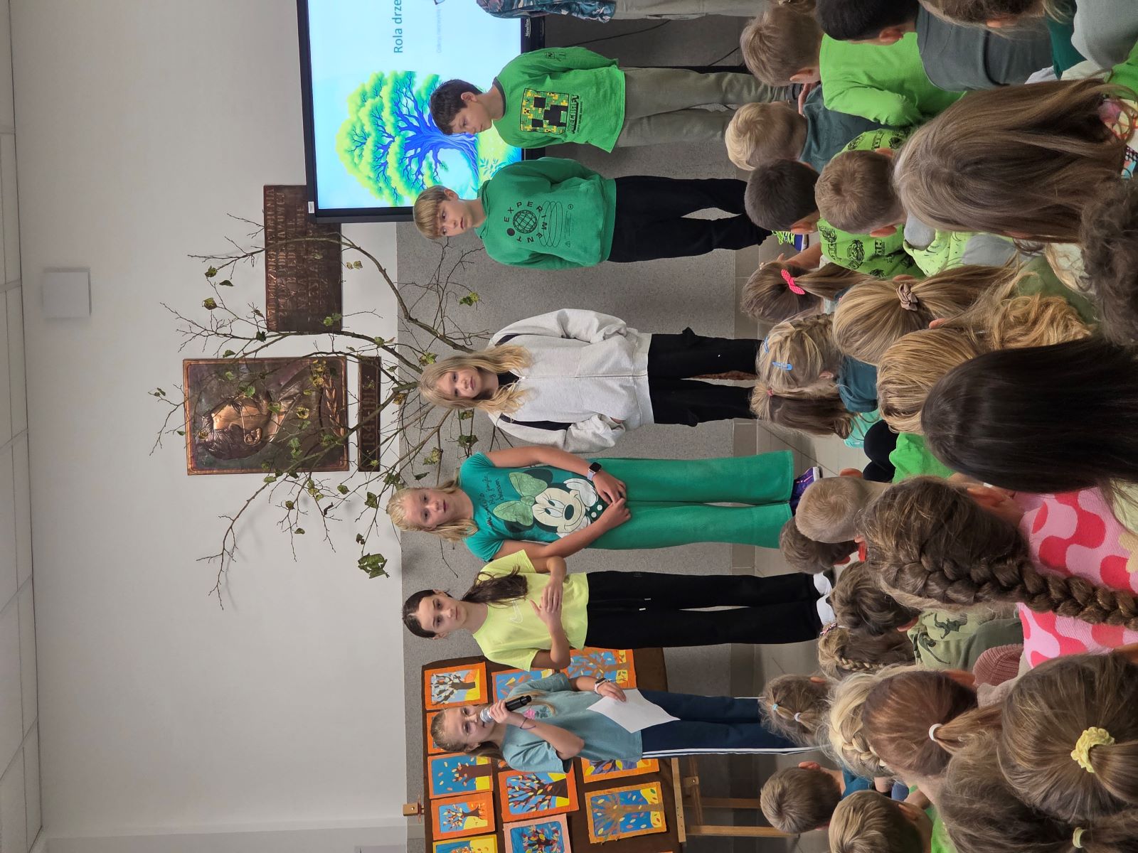W dniu 10 października w naszej szkole obchodziliśmy Dzień Drzewa – święto, które przypomina, jak niezwykle ważną rolę w naszym życiu odgrywają drzewa. To one dostarczają nam tlen, oczyszczają powietrze, dają cień, schronienie dla zwierząt, a także wprowadzają spokój i piękno do naszego otoczenia. Podczas szkolnych obchodów uczniowie uczestniczyli w różnych działaniach związanych z tematyką ekologiczną. Na początku dnia odbyło się spotkanie edukacyjne, podczas którego uczniowie dowiedzieli się, dlaczego drzewa są tak istotne dla człowieka i całej przyrody. W ramach spotkania zaprezentowano również prezentację multimedialną przedstawiającą rolę drzew w ekosystemie, ich znaczenie dla klimatu oraz różnorodne gatunki drzew występujące w Polsce. Nie zabrakło także działań praktycznych i artystycznych. Uczniowie klasy I wykonali swoje własne, kolorowe drzewa w technice mieszanej, wykorzystując naturalne jesienne liście, farby i papier kolorowy. Ich prace zachwycały pomysłowością oraz pięknem barw jesieni. Z kolei uczniowie klasy IV na lekcji techniki przygotowali jesienne drzewa przestrzenne, które ozdobiły szkolne korytarze, wprowadzając do szkoły wyjątkowy, jesienny klimat. Dzięki ich zaangażowaniu nasza szkoła stała się jeszcze bardziej kolorowa i przyjazna przyrodzie. Dzień Drzewa był doskonałą okazją, aby zachęcić wszystkich do troski o środowisko oraz przypomnieć, że nawet małe działania – takie jak sadzenie drzew, dbanie o zieleń czy oszczędzanie papieru – mają ogromne znaczenie dla naszej planety. Obchody Dnia Drzewa w naszej szkole połączyły edukację ekologiczną, twórczość artystyczną i wspólne działanie – wszystko po to, by kształtować wśród uczniów postawy proekologiczne i wrażliwość na piękno natury. 🌿