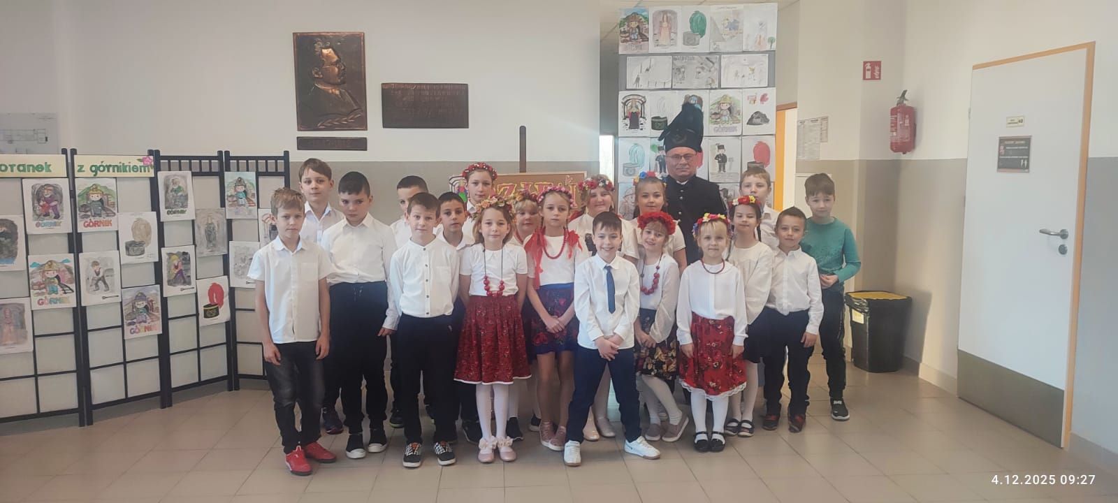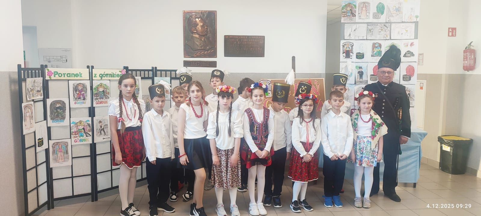 W dniu 4 grudnia w naszej szkole tradycyjnie obchodziliśmy Dzień Górnika. Z tej okazji uczniowie klas 1–3 przygotowali program artystyczny, który zaprezentowali zaproszonemu gościowi – lokalnemu górnikowi. Dzieci wystąpiły w odświętnych strojach, a wiele z nich miało na sobie czarne elementy garderoby nawiązujące do munduru górniczego. Niektórzy uczniowie wykorzystali drobne rekwizyty, które podkreśliły barbórkowy charakter uroczystości. Wiersze, piosenki i scenki zaprezentowane przez dzieci stworzyły ciepłą i uroczystą atmosferę. Zaproszony górnik z zainteresowaniem obejrzał występ i podziękował uczniom za pamięć oraz przygotowanie programu. Spotkanie było piękną okazją do kultywowania lokalnych tradycji i poszerzania wiedzy o pracy górnika.